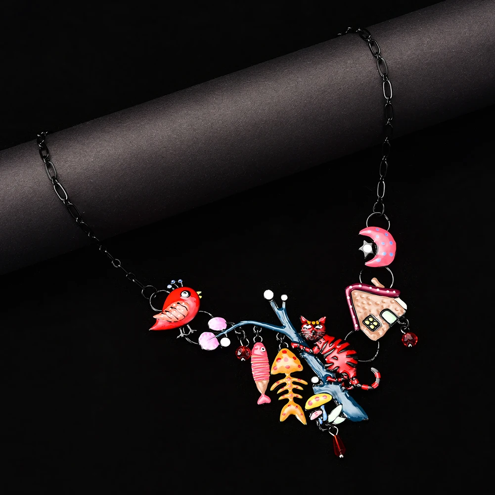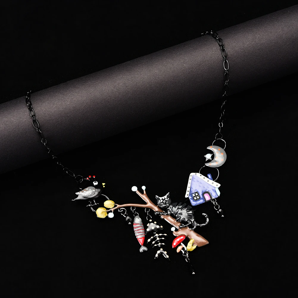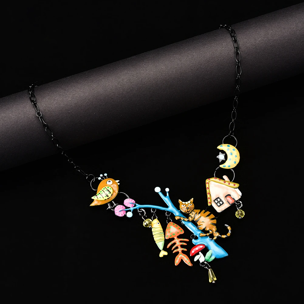 Крупное ожерелье-чокер из сплава с эмалью и кошечкой для женщин и девушек, ювелирные изделия с животными, оптовая продажа