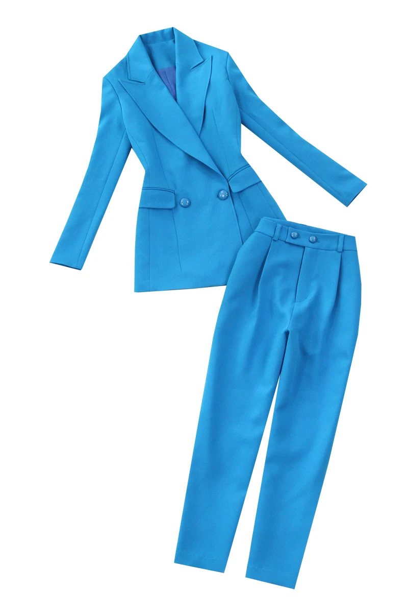 Женский костюм, весна-лето 2019, новый женский костюм со штанами, большой размер, тонкий синий костюм, куртка, штаны с высокой талией, комплект из двух предметов