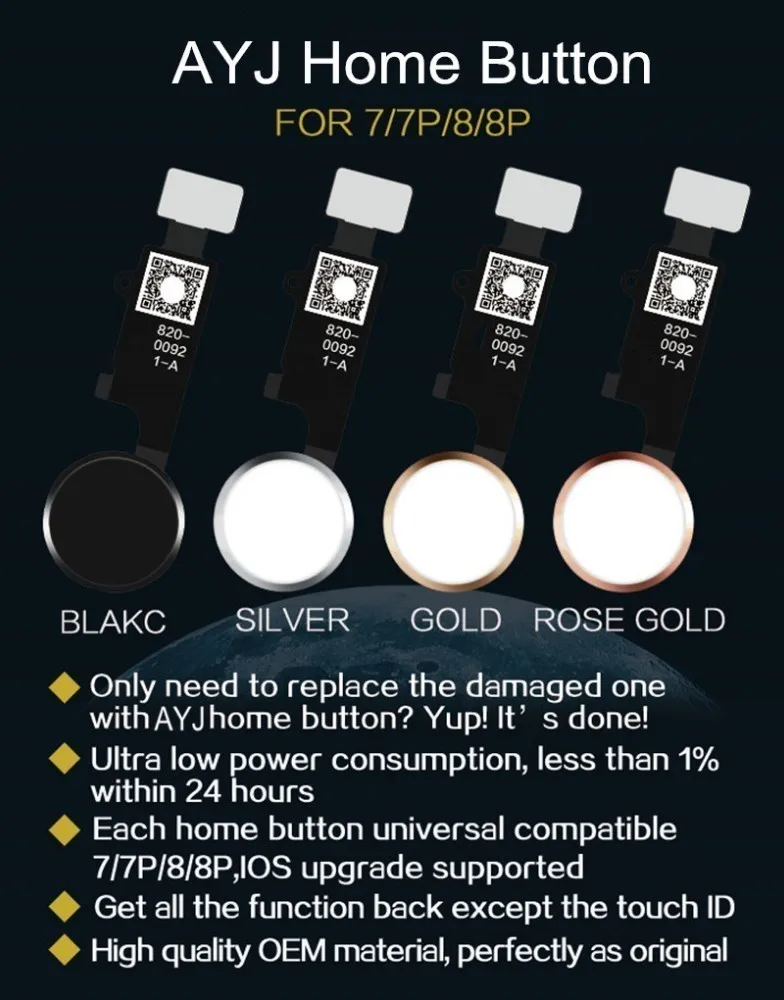 Совместимость,Универсальная кнопка home совместима с iPhone 7/7 p/8/8 p