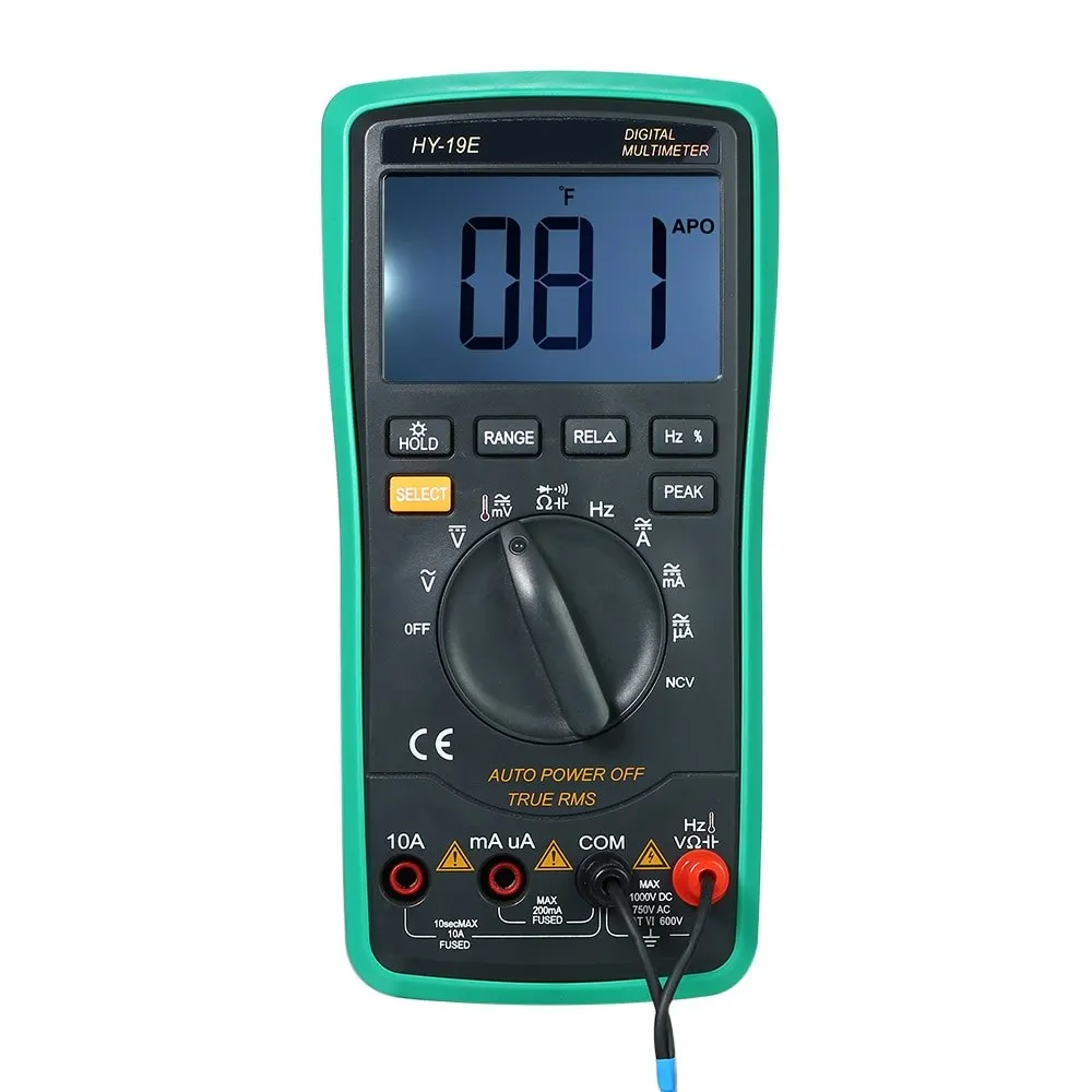 Этот мультиметр предназначен для безопасного и точного устранения различных автомобильных и бытовых электрических проблем. Он оснащен ЖК-дисплеем высотой 21 мм для четкого чтения. Может использоваться для измерения постоянного/переменного напряжения/тока, сопротивления, емкости, частоты, температуры, транзисторов и диодов и т. д.