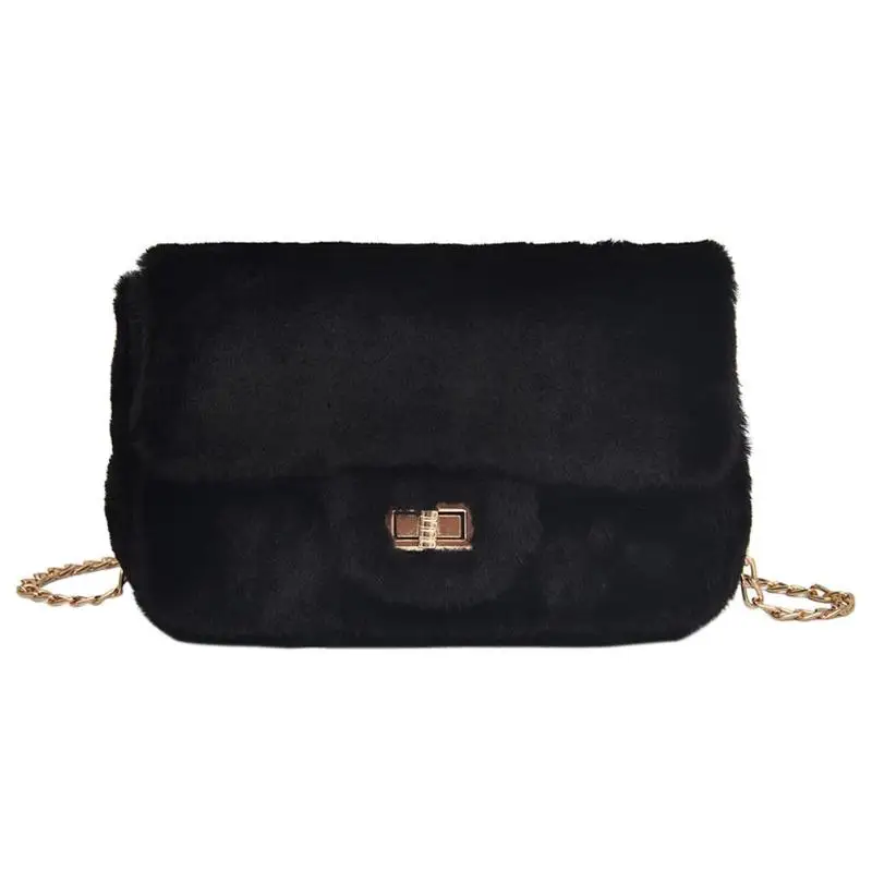 Модные женские плюшевые сумки через плечо, одноцветные сумки через плечо с цепочкой, повседневные аксессуары