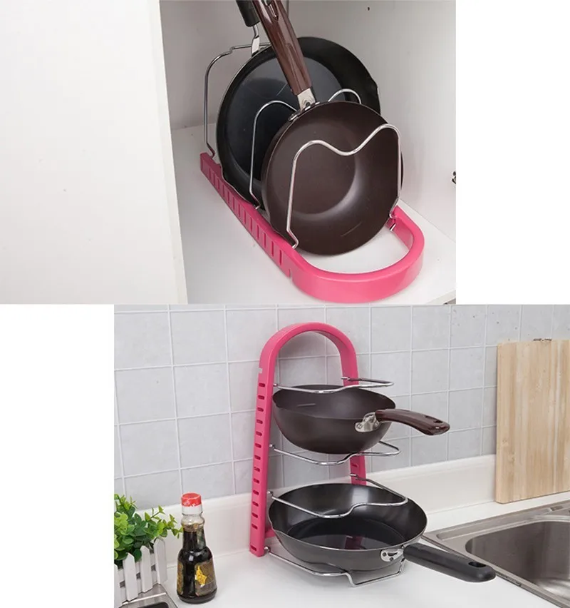 Регулируемый Кухня стеллаж для хранения для сковородка для жарки крышка кастрюли посуда Органайзер подставка держатель