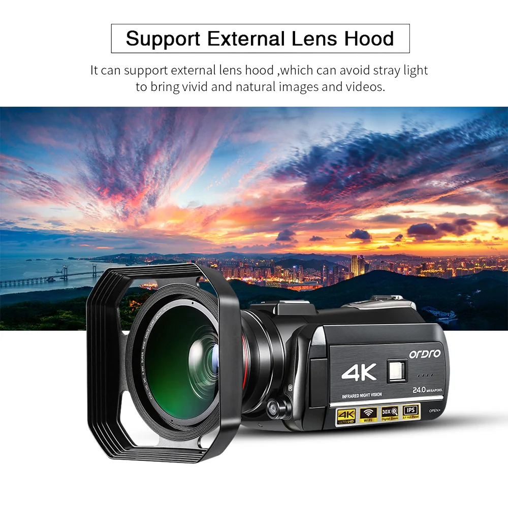 ORDRO AC3 4 K WiFi цифровая видеокамера DV рекордер 24MP 30X зум IR Night 2 шт. аккумуляторные батареи для видения с