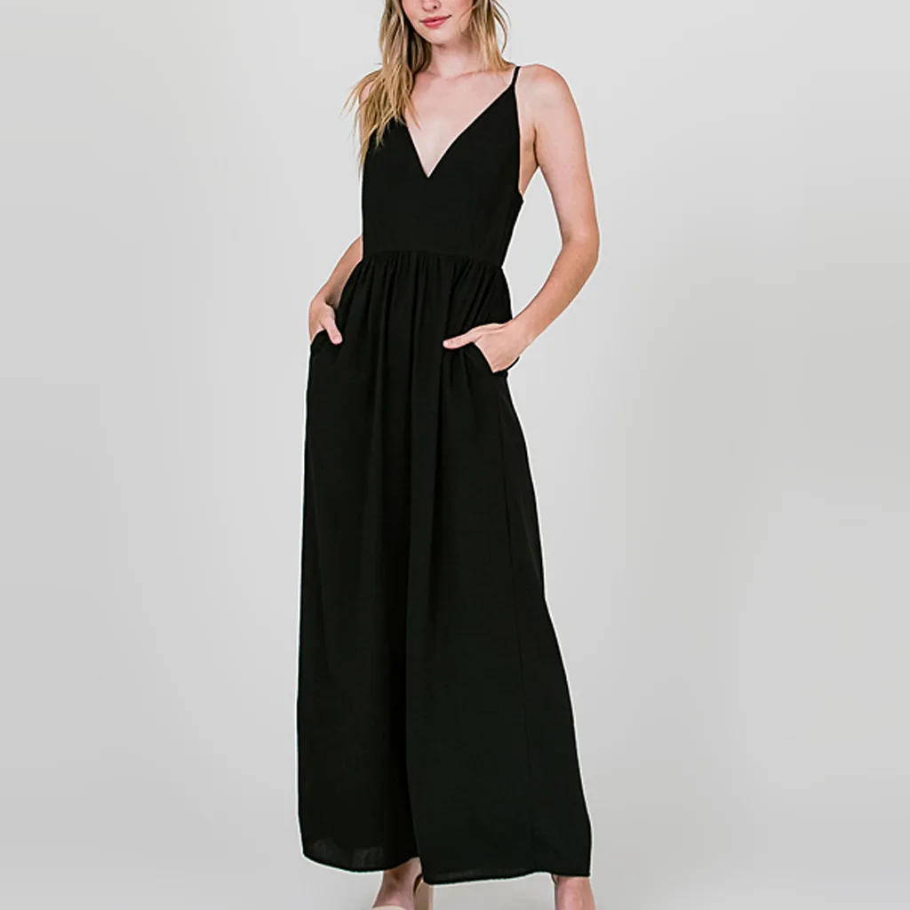 Модные женские комбинезоны без рукавов с V-образным вырезом и открытыми плечами с высокой талией