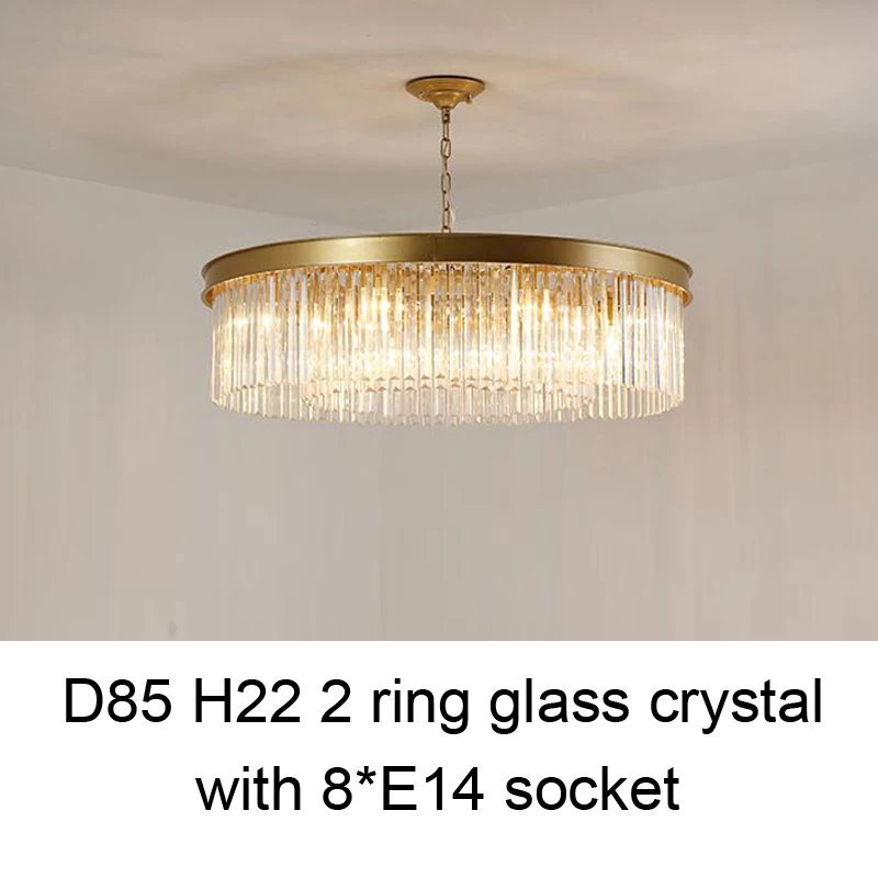 Lamp body Size:small size: Diameter 55CM Height 22CMbig size: Diameter 85CM Height 22CMHanging chain:50cm adjustable.If you need longer,pls leave messageLamp material:Iron lamp body + high quality glass crytal tubeSocket type:E14(bulb with E14 base could work)Voltage:110V 120V 220V 230V 240V all OK***Kindly note***:Our default setting is for hanging installation with 50cm adjustable chain***If you don't need hanging chain, please leave message***