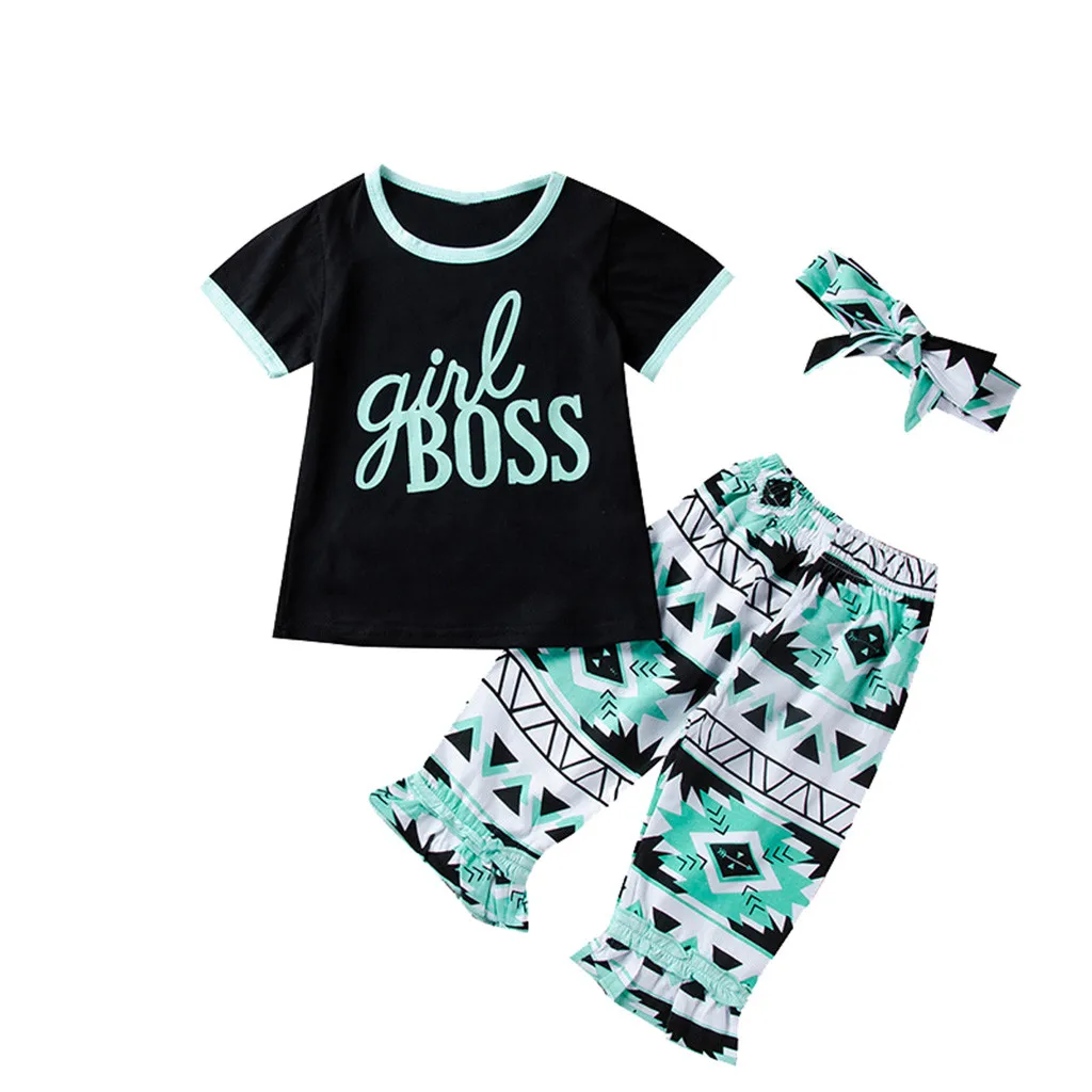 Футболка с короткими рукавами и буквенным принтом для малышей топы + шорты + повязка на голову
