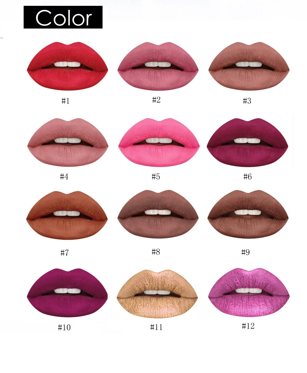 Горячая 12 видов цветов, матовая металлическая жидкая губная помада, Сексуальная Красная губная помада, блеск для губ, оттенок, макияж, долговечная водостойкая антипригарная чашка, блеск для губ