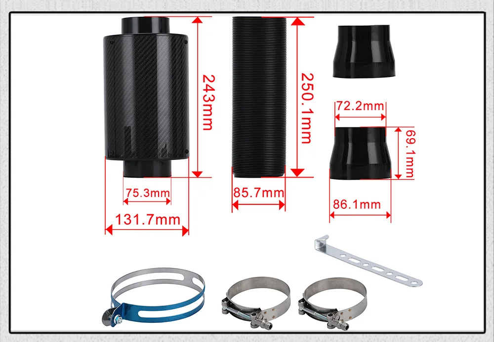 Изготовлен из высококачественного углеродного волокна Размер фильтра: 190 мм (Д) x 132 мм (Д) Длина углеродного волокна: 181 мм Калибр впуска: 68 м Длина регулируемой трубы: 250 мм (не растягивается) Калибр регулируемой трубы: 73 мм С вентилятором илиБез вентилятораВ комплект входит: