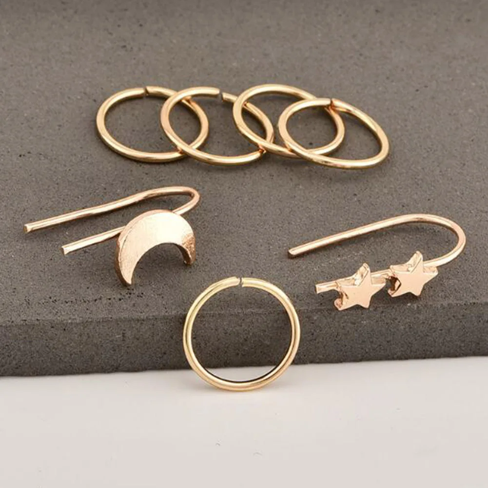 7 шт./компл., Винтажный Золотой маленький круг, круглая звезда, луна, пирсинг, набор серег-колец
