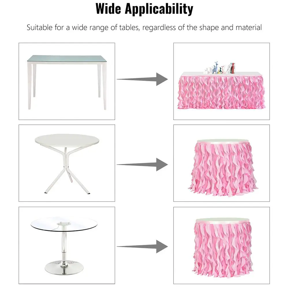 Длина юбки для стола: 6 футов = 72 дюйма, 9 футов = 108 дюймов