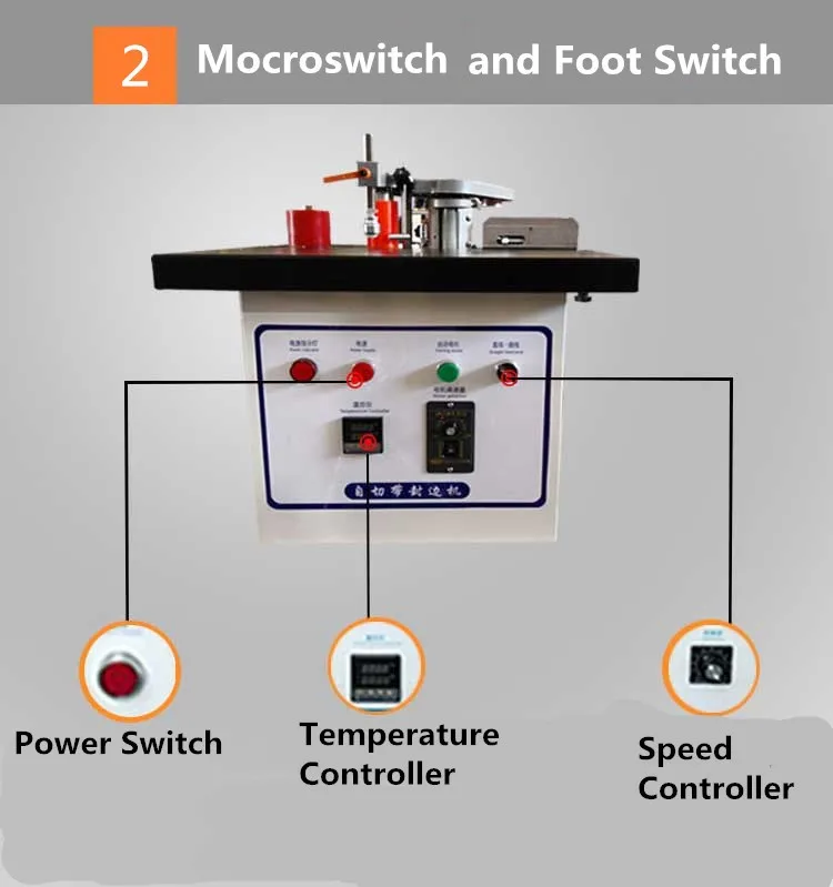 Размеры машины: 500*500*510 мм Напряжение: 110/220 в 50/60 Гц Мощность: 0.8квт Емкость склеивания: 880 мл Толщина ленты: 0,3-3 мм Метод склеивания: Двухсторонняя склейка Использование Кривая, прямая кромка Регулировка скорости: Да Ширина кромки: 10 мм-60 мм Скорость подачи 2-6 м/мин Время нагрева: 5-10 минут