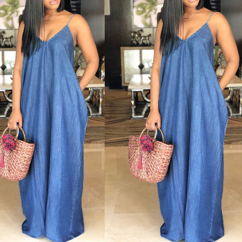 1.Features: Fashion Wear, Fashion Womens,Solid,V-Neck ,Backless,Sleeveless, Backless,Denim, Beach Long Dress.