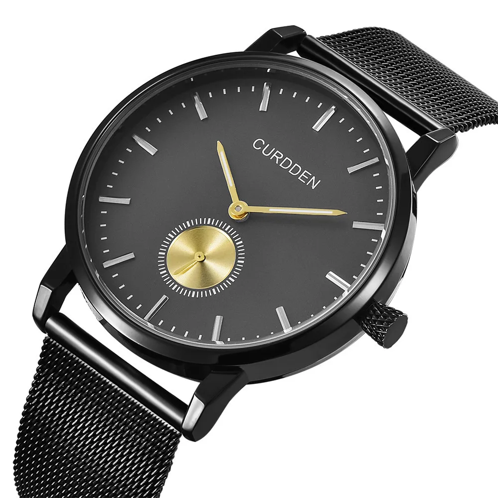 Стильный дизайн часов: ключ устойчивый к царапинам ультра плоская твердость стекло лицо; Дизайн циферблата синие стрелки; IP Черный Покрытие чехол для часов