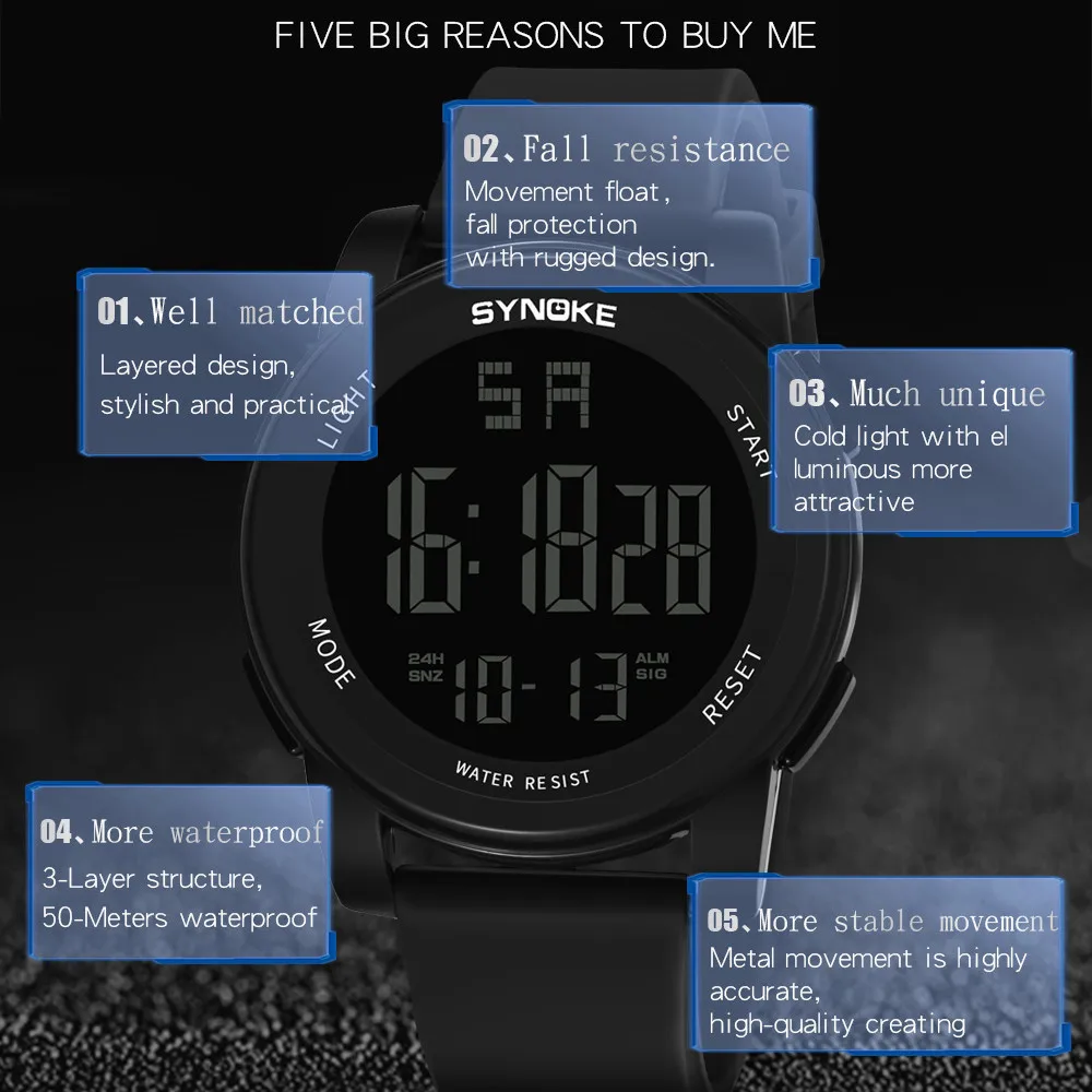SYNOKE мужские многофункциональные военные спортивные часы светодиодный цифровой двойной ход Мужские t наручные часы