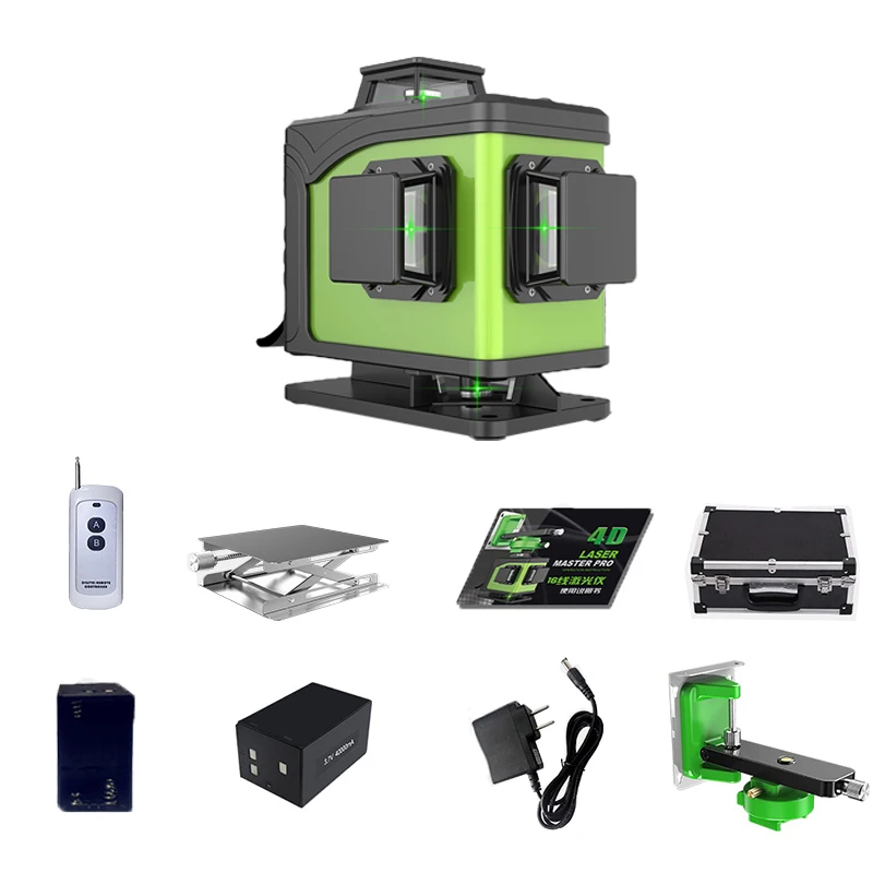Название моделиXE-16GТочность± 3 мм/10 мДлина волны808 нмЦвет лазераЗеленыйРабочая средаКрытый/ОткрытыйСамовыравниванияPlusmn3degРабочая температура-10 ~ 50 градусовРасстояние от стены7 ммВремя работы8 ~ 12HРазмеры130*160*70 ммИсточник питанияЛитиевая батарея Посылка включает в себя:1*16 линий лазерный уровень зеленого луча1 * алюминиевая коробка1 * подъемная платформа1 * батарейный блок AA1 * литиевая батарея1 * Руководство пользователя1 * Адаптер питания1 * Магнитный верхний настенный кронштейн1 * пульт дистанционного управления (бесплатный подарок, не в сфере послепродажного обслуживания)