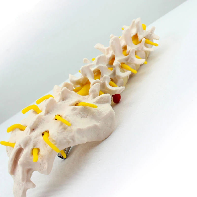 Поясничные позвонки, крестообразные кости, спинальные нервы и позвоночник с 5 межпозвоночными дисками расположены на основании и устанавливаются гибко.