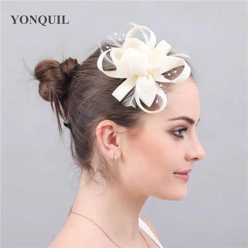 Бежевый цветок вуалетки для Волос Шляпа Дерби Королевский головной убор вуаль с петлями аксессуары для волос Заколки для женщин женский свадебный головной убор