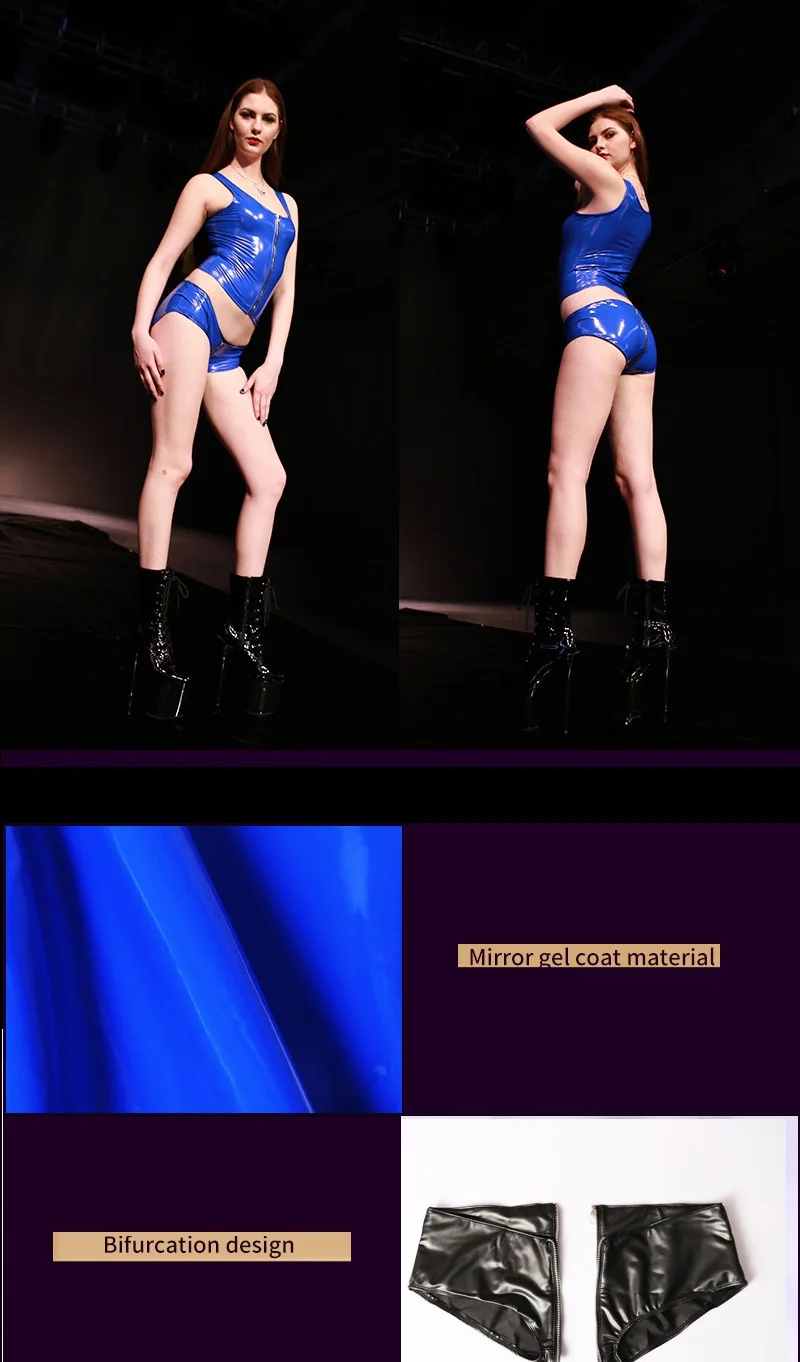 Сексуальные женские блестящие мини-шорты из латекса и ПВХ с низкой посадкой, на молнии, с открытым шаговым швом, из искусственной кожи, Клубная одежда F41
