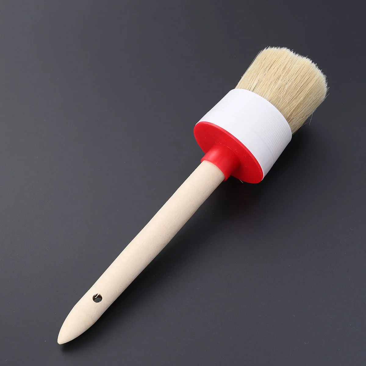 1 шт., круглая щетина с деревянной ручкой, щетка для чистки автомобиля, инструмент, натуральная щетина для мытья волос, щетка для чистки колес, автомобильный очиститель
