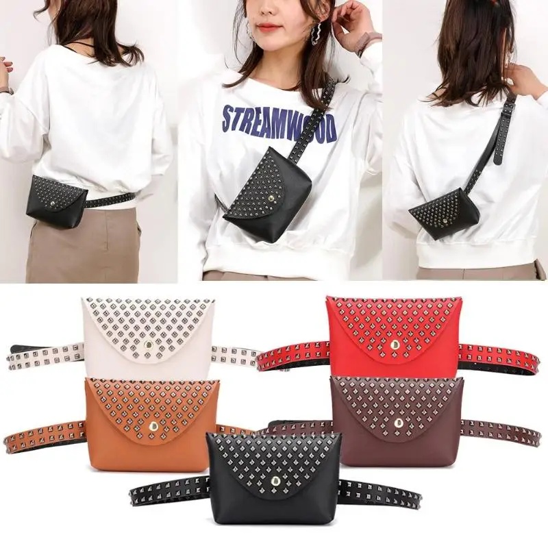 Для женщинПовседневная одежда в стиле панкПоясная сумка с заклепками; нагрудная сумка для девочек из искусственной кожи; сумка-мессенджер на плечо; сумки через плечо
