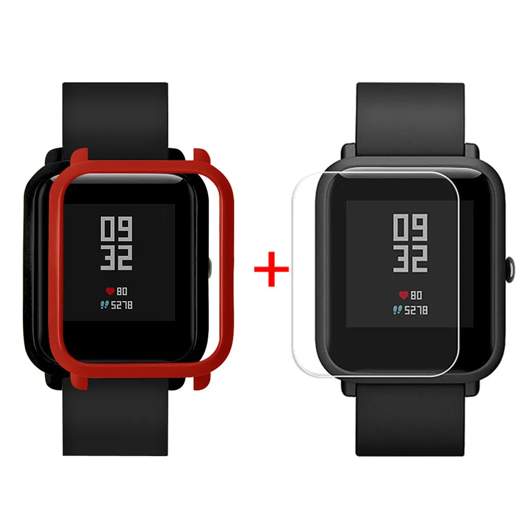 Тонкая красочная рамка, чехол для ПК, защитный чехол для Huami Amazfit Bip Younth Watch с защитной пленкой для экрана