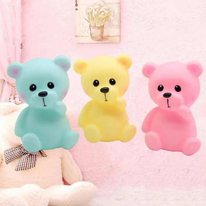 Материал: ПВХ, силикон Цвет: белый, розовый, зеленый, желтый Размер: 90 мм x 85 мм x 130 мм Форма: маленький мультяшный медведь Тип: светодиодный ночник Питание: 3 батарейки на кнопках Количество: 1 шт. Особенности: Изготовлен из прочных материалов, имеет длительный срок службы. Переключатель управления питанием, чувствовать себя комфортно и высокая степень правды. Встроенный светодиодный лампы. Область применения: спальня, мебель для дома, подарки, бары, кафе, рестораны и романтические места. Посылка: 1 светодиодный ночник Примечание: Из-за разницы между различными мониторами, изображение может неточно отражать фактический цвет item.1cm = 0,3937 дюйма