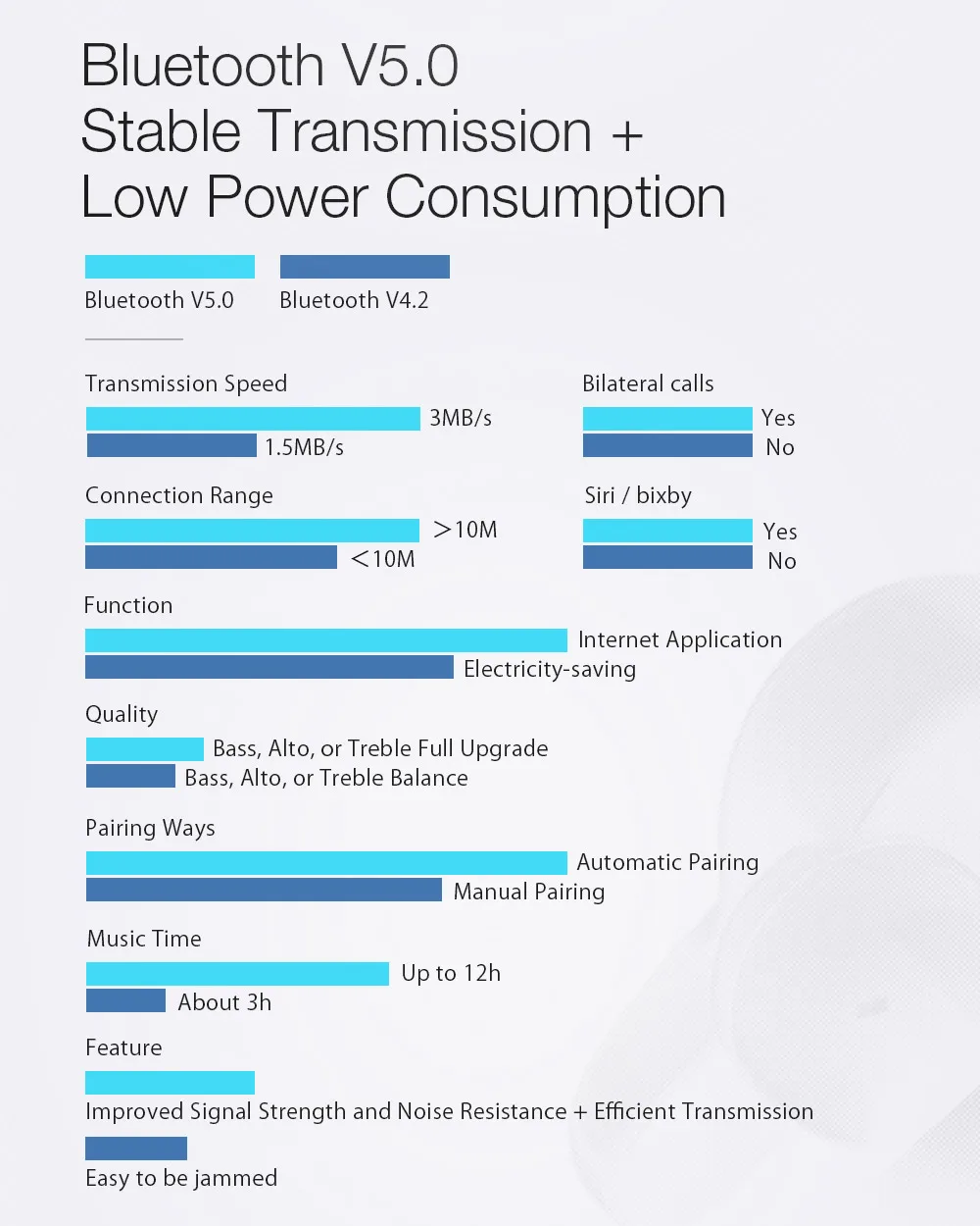 1. Bluetooth-соединение V5.0 и 10M, не требующее помех, позволяет снять руки и позволяет избавиться от проводных ограничений, наушники TWS обеспечивают удобство в повседневной жизни благодаря фактическому беспроводному подключению в технологии.
