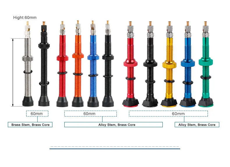 -Материал: латунный сердечник, крышка из сплава, дополнительный стержень из латуни или сплава -Цвет: на выбор -Тип клапана: Presta -Высота: 60 мм -Размер: Пожалуйста, ознакомьтесь с графикой ниже