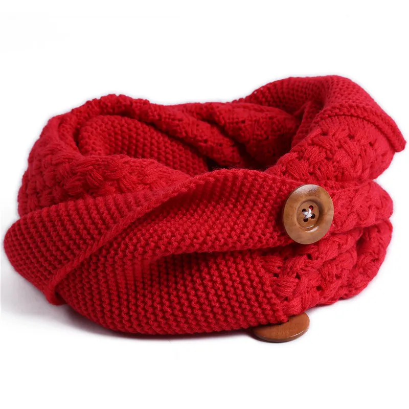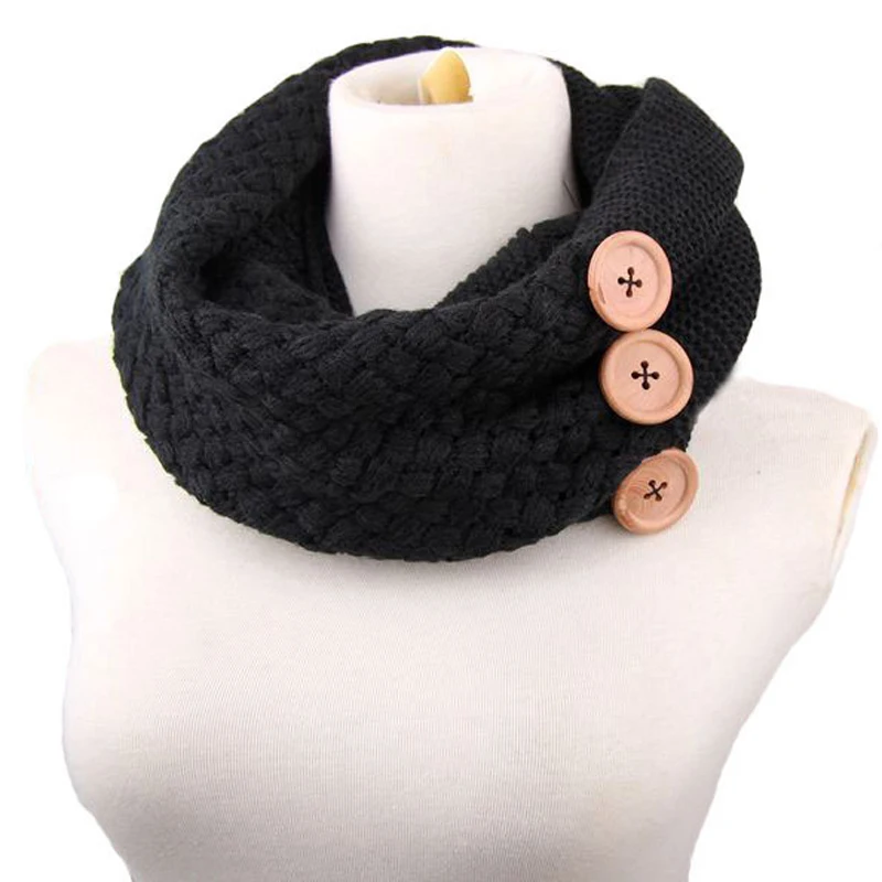 Модный зимний теплый шарф, два круга, 3 пуговицы, вязаный шерстяной воротник, хомут, кольцо, шарф, шаль для женщин, Новинка