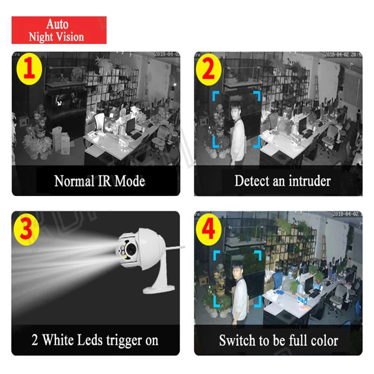 Высокомощные ик-светодиоды обеспечивают идеальную работу ночного видения с эффективным ик-контролем расстояния до 30 метров.
