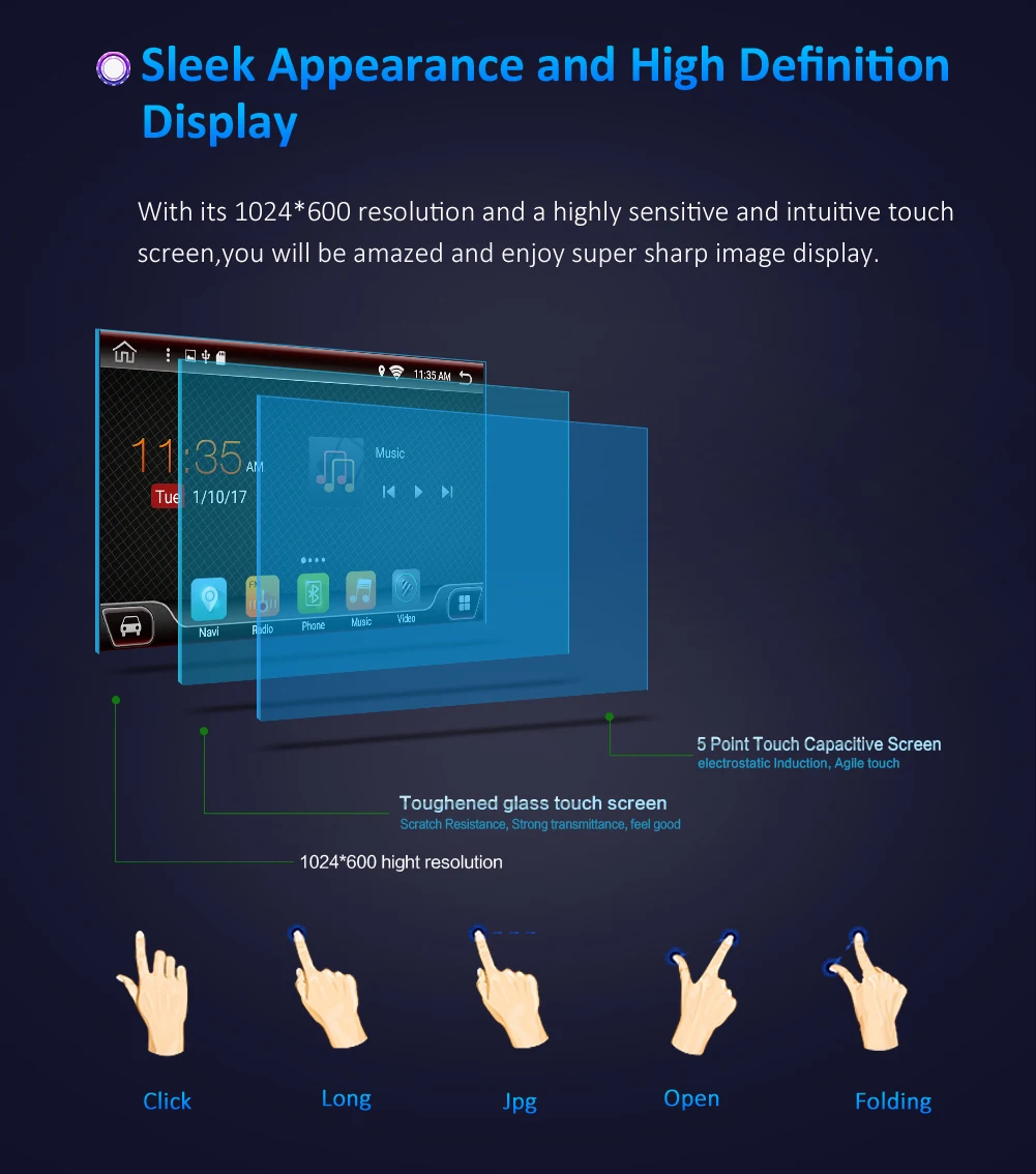1:Bluetooth для освобождения рук. Поиск телефонных книг по Bluetooth, от A до Z 2:HD емкостный сенсорный экран: 1024*600 3. Камера заднего вида/запись привода DVR с тылового USB: Поддержка 4:OBD, внешний микрофон, зеркальная связь: поддержка (требуется дополнительная оплата) 5: холодный запуск около 20-35 секунд 6:Mirror Link, управление на рулевое колесо: Поддержка 7:Wi-Fi: Встроенный/через телефон, как Wi-Fi Горячая точка. 8. Поддержка приложений: много, например: Google Play Store, Skype, Facebook, YouTube, Twitter и т. Д. 9: Поддержка RDS.FM частота: 87,5-108mh AM частота: 522-1710 кГц 10: Автомобильный Интернет: Встроенный Wi-Fi, поддержка 3G/4G/современный (необходимо доплатить) 11: поддержка онлайн-карты GPS, таких как Google Yandex.SYGIC,IGO,TOMTOM/ Waze. Карта Яндекса должна связаться с нами, чтобы установить 12: Многоязычный язык s: английский/русский/французский/немецкий/испанский/итальянский/Арабская/Португальский/Турецкий/тайский/Польский/иврит и т. д., 60 видов языков 13. Рабочая температура: -20 °C-+ 70 °C Температура хранения: -30 °C-+ 80 °C 14. Логотип загрузки: Выберите Встроенный 50 видов Автомобильного Логотипа. Выберите логотип запуска автомобиля, как вам нравится. 15:RCA кабели для сабвуфера, кабель питания plug and play, легко устанавливается 16: ОС Android, Google Play Store, Skype, Facebook, YouTube, Twitter и т. Д. 17. Гарантия: 1 год 18. Бесплатный подарок: камера заднего вида + встроенная карта