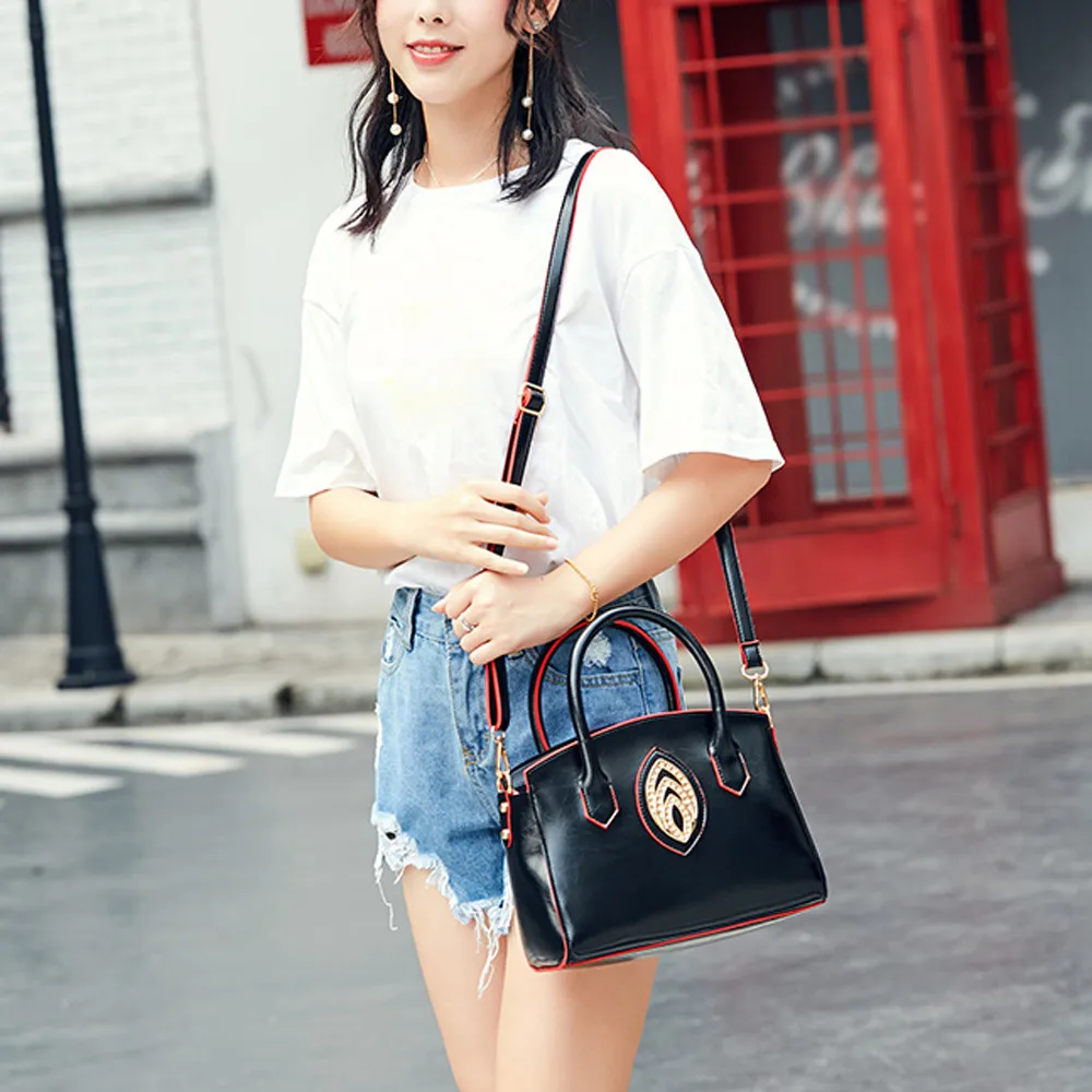 Винтажная женская кожаная однотонная сумка через плечо со стразами сумка на плечо