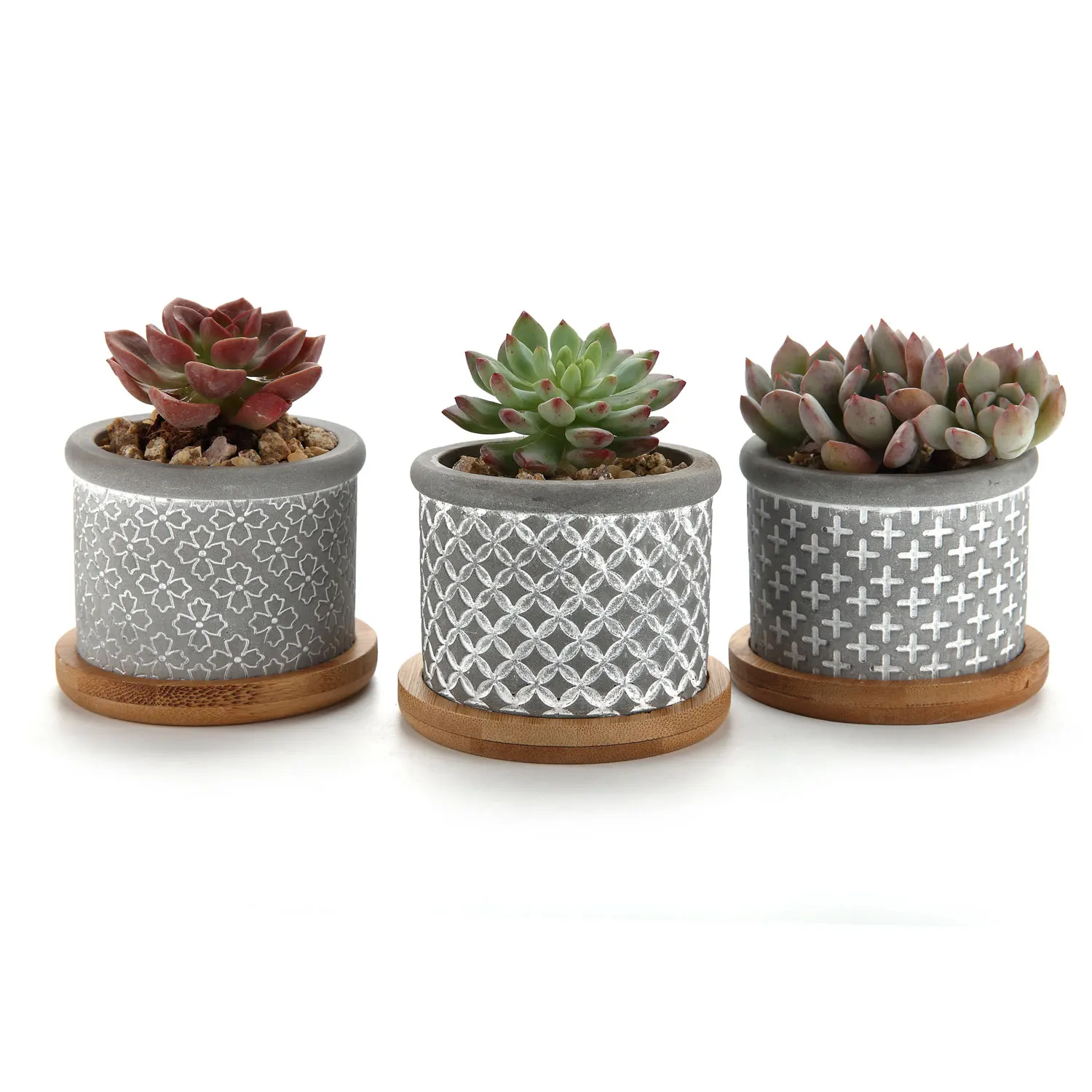 T4U 2,25 дюймов цементный суккулентный горшок с бамбуковым поддоном серый набор из 3 маленьких бетонных кактусов горшок для растений