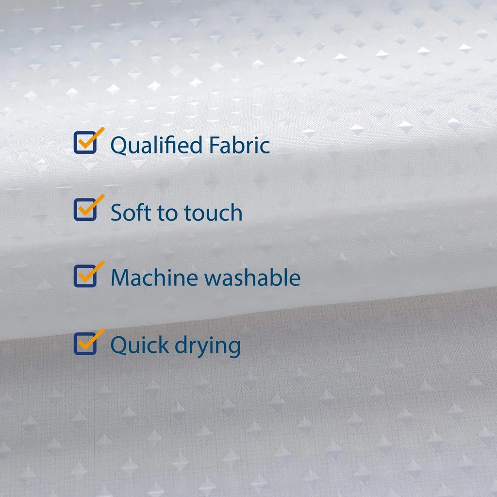 Изготовлено из нетоксичной полиэфирной ткани с 100 ГСМ (г/м²), этот вкладыш для занавесок для душа является экологически безопасным и здоровым для вас и вашей семьи, в отличие от виниловых и пластиковых альтернатив с ПВХ.
