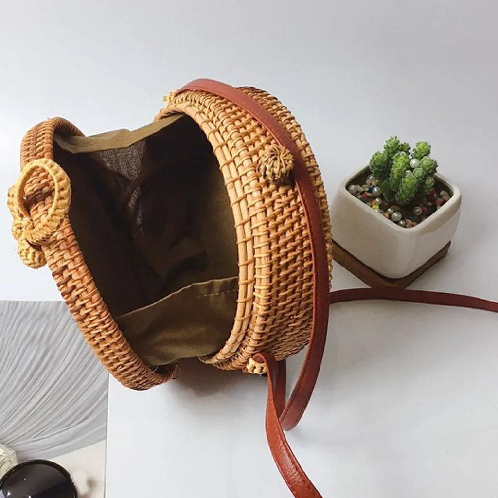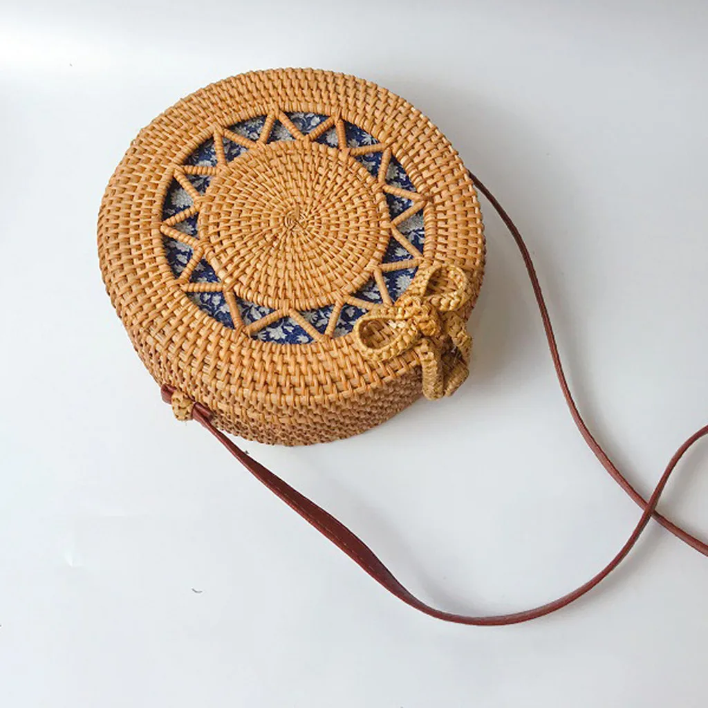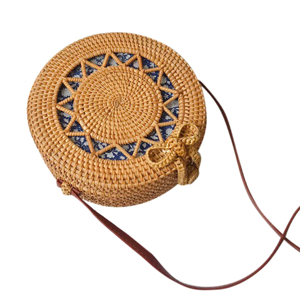 Круглая плетеная пляжная сумка из ротанга в стиле ретро