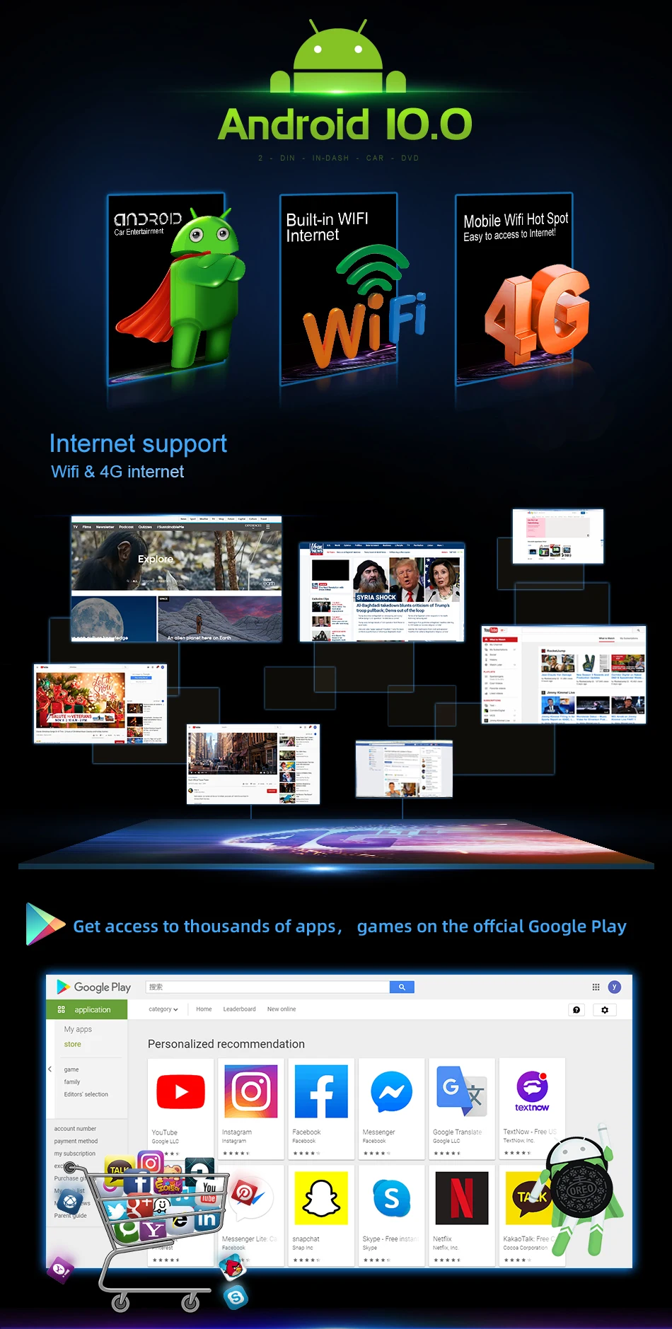 1:Bluetooth бесплатно. Поиск телефонной книги по Bluetooth от "A до Z" 2:HD емкостный мультитач экран: 1024*600 3: камера заднего вида/запись привода DVR от заднего USB: Поддержка 4:OBD, внешний микрофон, зеркальная связь: поддержка (требуется дополнительная оплата) 5: холодный запуск около 20-35 секунд 6: зеркало, управление рулем: Поддержка 7:Wi-Fi: Встроенный/через телефон в качестве Wi-Fi горячей точки. 8: поддержка приложений: многие, например: Google Play Store, Skype, Facebook, YouTube, Twitter и т. Д. 9: Поддержка RDS.FM частота: 87,5-108MH AM частота: 522-1710 кГц 10: Автомобильный Интернет: встроенный wifi, suport 3G/4G/современный (требуется дополнительная оплата) 11: Поддержка GPS онлайн-карты, такие как Google Yandex.SYGIC,IGO,TOMTOM/ Waze.Yandex карта должна связаться с нами для установки 12: мульти OSD Languaes: английский/русский/французский/немецкий/испанский/итальянский/арабский/Португальский/Турецкий/тайский/Польский/иврит и т. д. 60 видов языка 13: Рабочая температура: -20 °C ----- + 70 °C Температура хранения: -30 °C ----- + 80 °C 14: Логотип Ботинка: Выберите Встроенный 50 видов Автомобильного Логотипа. Выберите логотип автомобиля, который вам нравится. 15:RCA кабели для сабвуфера, кабель питания plug and play, легко установить 16: чистая ОС Android, Google Play Store, Skype, Facebook, YouTube, Twitter и т. Д. 17. Гарантия: 1 год 18. Бесплатный подарок: камера заднего вида + встроенная карта