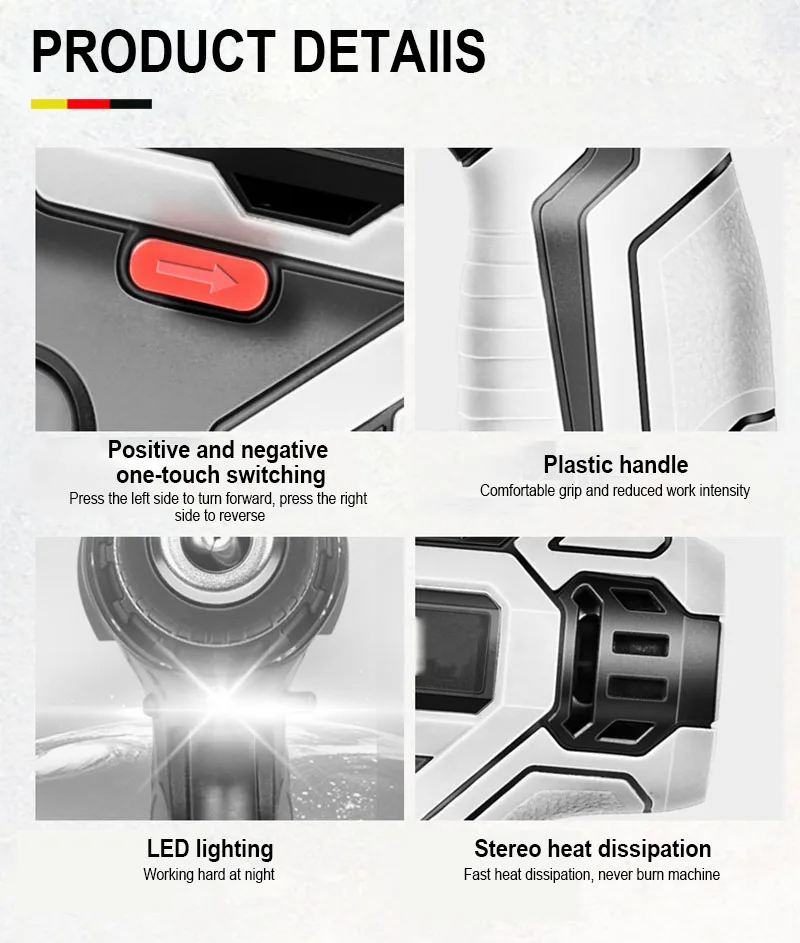 Беспроводная Дрель 3/8 дюйма имеет профессиональную мощность и невероятно светильник (около 3 фунтов). Его максимальная емкость для бурения древесины составляет 35 мм и номинальный крутящий момент-32n. М. Это соотношение производительности и веса делает бит идеальным для небольших и сложных сред. Это отличное решение для электриков, сантехников или подрядчиков, которые сделали много овердХарактеристики:Напряжение: AC110-240VСкорость без нагрузки: 550 об/мин (низкая), 1350 об/мин (высокая)Макс. Крутящий момент: 32N · mПатрон Размеры: 0,8 ~ 10 ммАккумулятор: 42 вМощность: литий-ионный аккумуляторРазмер изделия: 190*230 мм/7,48 * 9.06inВес изделия: 1200 г/42,33 унцийВес посылка: 1960 г/69,14 унцийПосылка:1x Беспроводная Дрель1x зарядное устройство2x аккумулятор