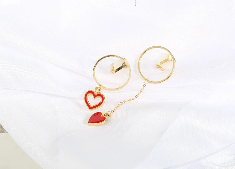 Клипсы, серьги без пирсинга, клипсы для ушей, красное сердце, серьги без отверстия, jwelry для женщин