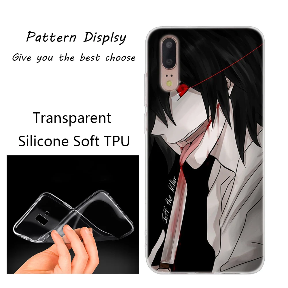 MLLSE Горячая Мода Аниме Джефф убийцаПрозрачный чехол для телефона из мягкого силикона ТПУ с рисункомЧехлы для Huawei P8 P9 Lite Mini 2017 P10 P20 P30 Lite Pro P Smart 2019 PlusМягкий силиконовый чехолВ чехле!