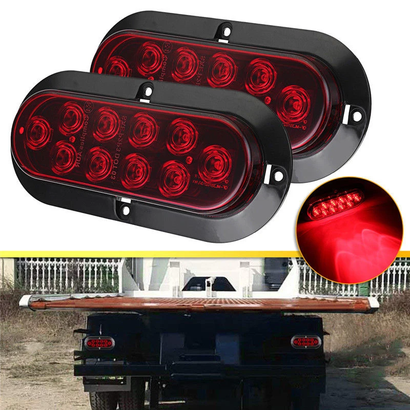 * 2 прицепа RV Грузовик Красный 10-светодиодный поверхностный монтаж 6 ''Овальный стоп поворотный задний светильник 12В