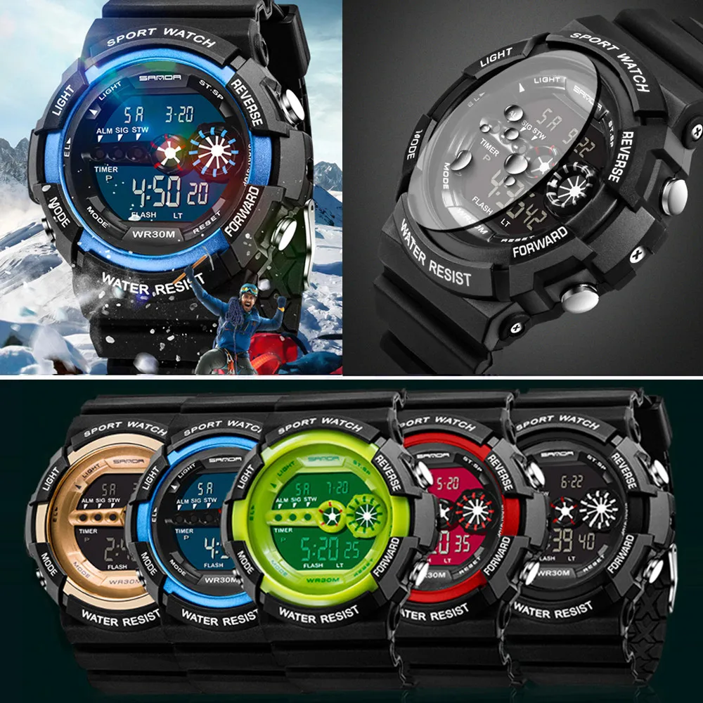 Мужские часы из нержавеющей стали, светодиодный цифровой будильник, водонепроницаемые спортивные армейские кварцевые часы