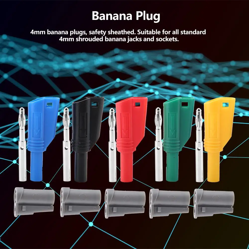 4 мм банановые пробки, безопасная обшивка. Подходит для всех стандартных 4 мм кожухов бананов и розеток. Эти вилки типа «банан» изготовлены из высококачественной меди, долговечны и используются для длительного использования. Удобно использовать, они могут быть подключены к проводам путем сварки илиСборка. Обычно используется для подключения проводов или кабелей, хорошая изоляция для безопасного использования. Они являются отличными соединителями для кабеля, а также другого электрического оборудования.