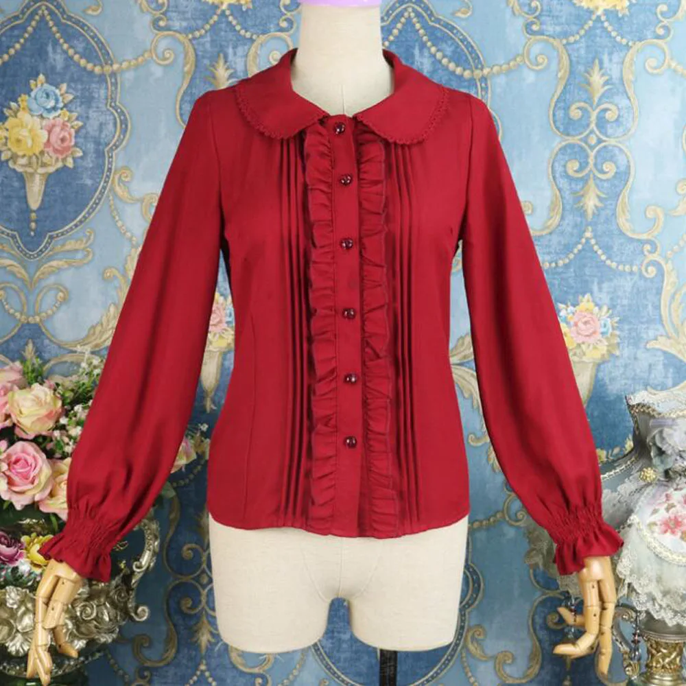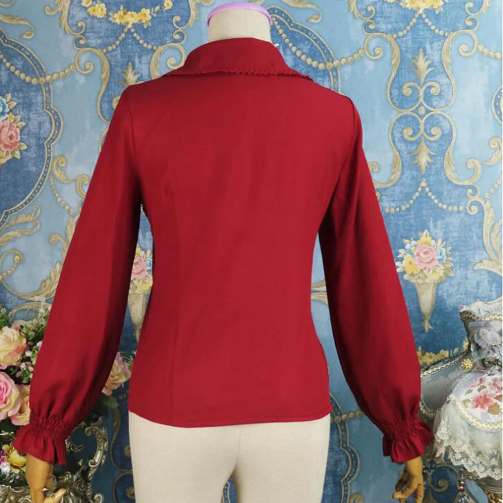 Название: красная блузка в стиле Лолиты с длинным рукавом, шифоновая средневековая винтажная блузка в стиле стимпанк, панк, готика, викторианская блузка, Пиратская рубашка, топы для женщин 2021
