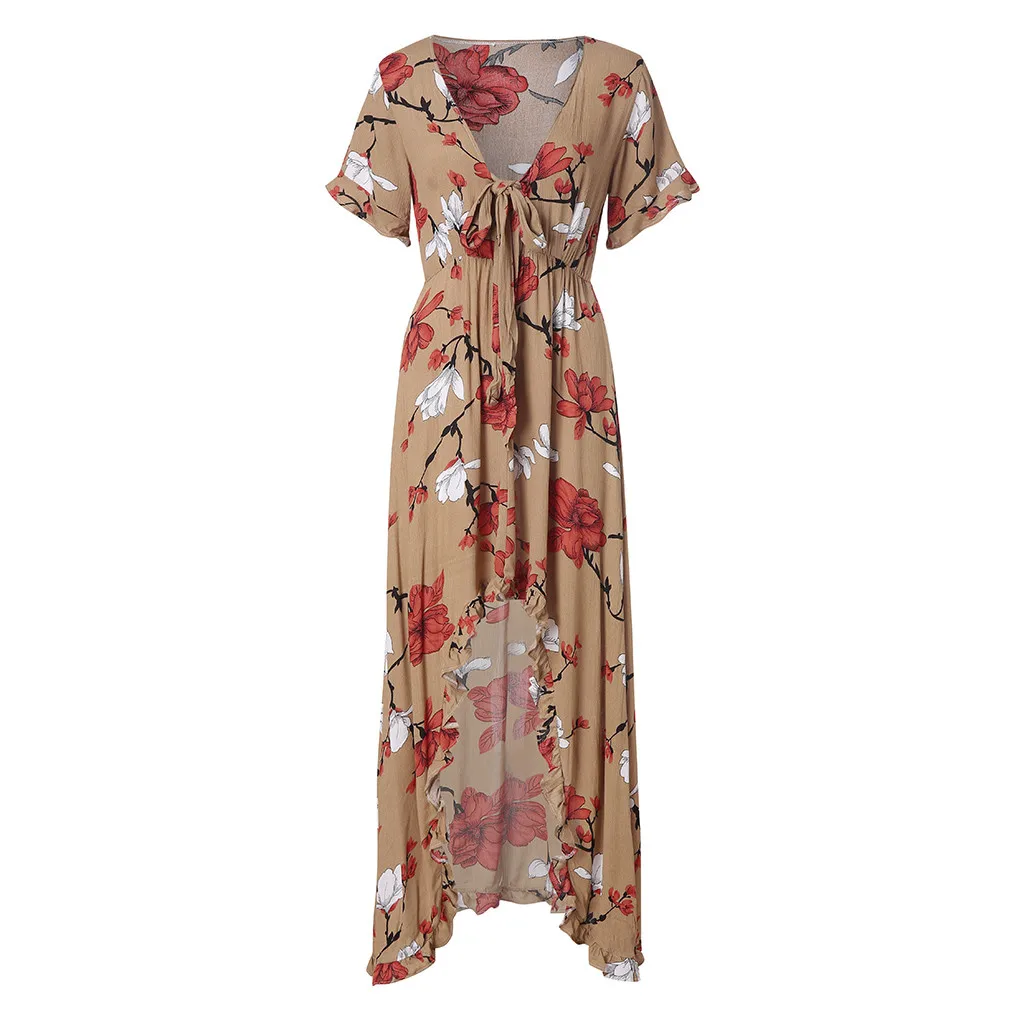 Женское летнее пляжное сексуальное асимметричное длинное платье с v-образным вырезом и коротким рукавом