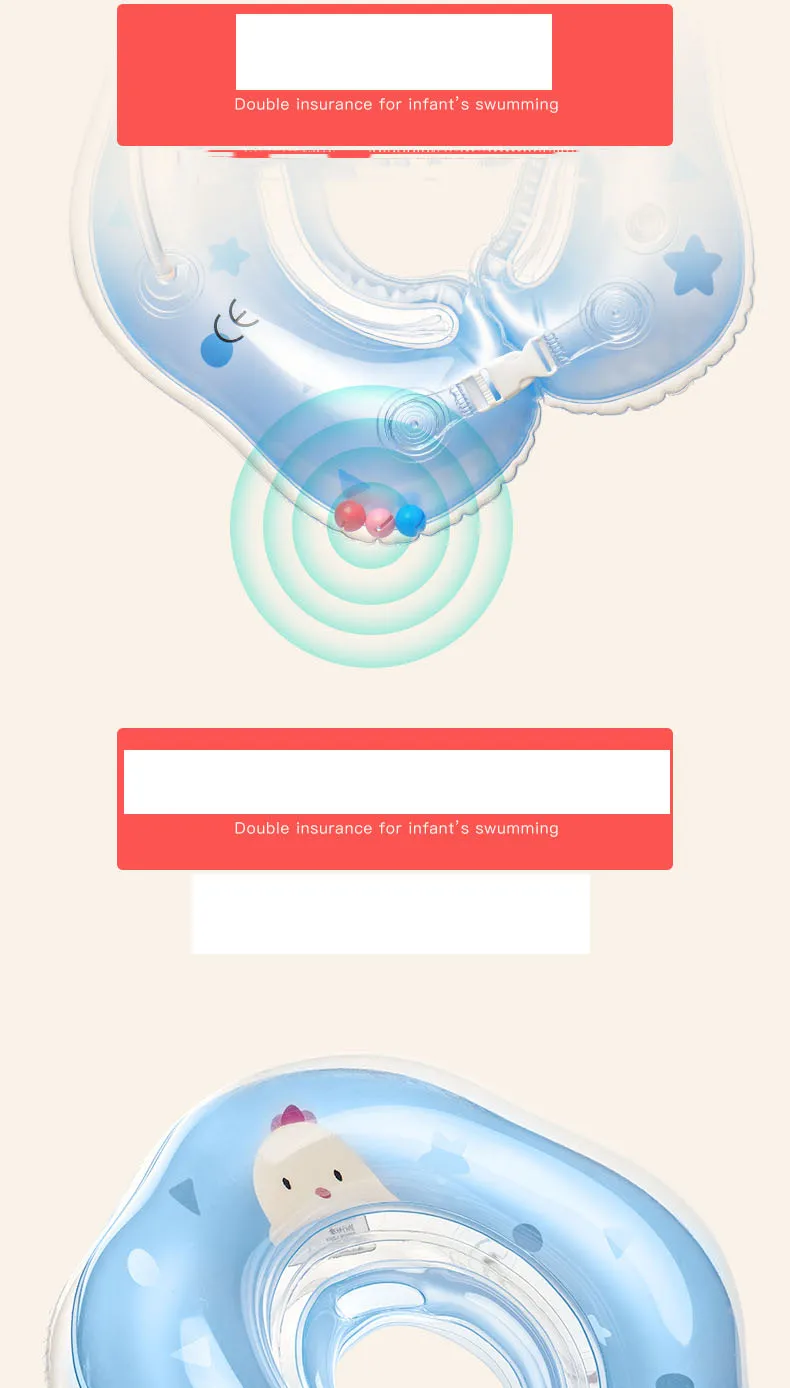 Прочная конструкция с Двойным Зажимом, мягко нажимайте, плотно фиксируйте подушки безопасности с обеих сторон, Обнимайте ребенка в плавании, так же надежно, как изгиб материнской arm2. Дизайн прорастающего звука, встроенный мелодии звонка, стимулирует удовольствие от плавания ребенка, привлекает ребенка плавать actively.3 использование высокопрозрачных ПВХ тканей, говоря о надувной шее, поверхность имеет мягкое эластичное прикосновение,