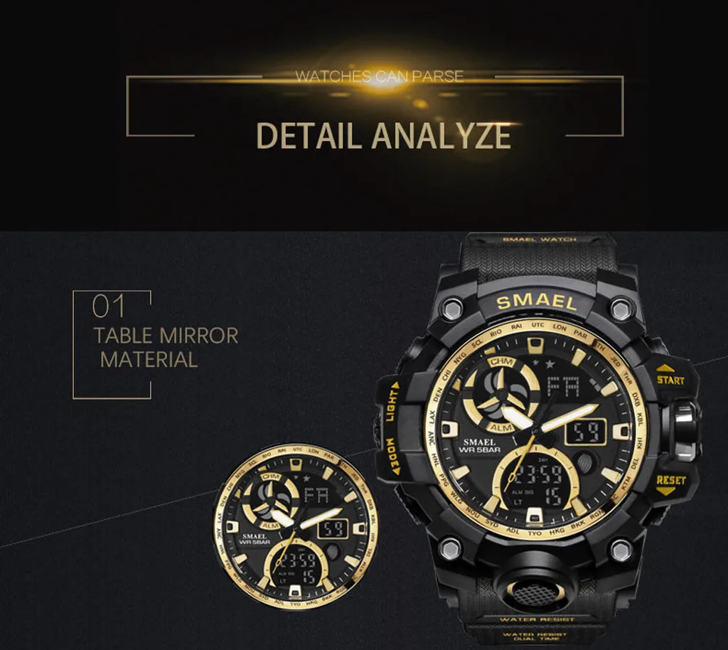 Водонепроницаемый цифровой Watch-3ATM водостойкий (подходит для повседневного использования и плавания. Защита от брызг/дождя. Не подходит для дайвинга.) Пожалуйста, не нажимайте кнопку под водой Высококачественное качество и удобство в носке-высокотвердое стеклянное зеркало и ударопрочный корпус обеспечивают долговечность. Мягкий и прочный ремешок для часов из искусственной кожи и усиленный ремешок из смолы делают его более эргономичным и удобным в носке Многофункциональные часы: двойной дисплей времени, секундомер, светодиодная подсветка, будильник, календарь, водонепроницаемость, ударопрочность, формат 12/24 ч Военные Спортивные часы-Модные Военные часы с внешним видом и большим циферблатом (диаметр корпуса 1,96 дюйма/50 мм), эти цифровые спортивные часы подходят для всех видов спорта и активного отдыха Применение-эти спортивные часы идеально подходят для всех видов спорта, и это действительно повседневные часы, а также идеальный подарок для любого случая. Пожалуйста, не стесняйтесь обращаться к нам, если у вас есть какие-либо вопросы. Мы сделаем все возможное, чтобы помочь вамХарактеристика: