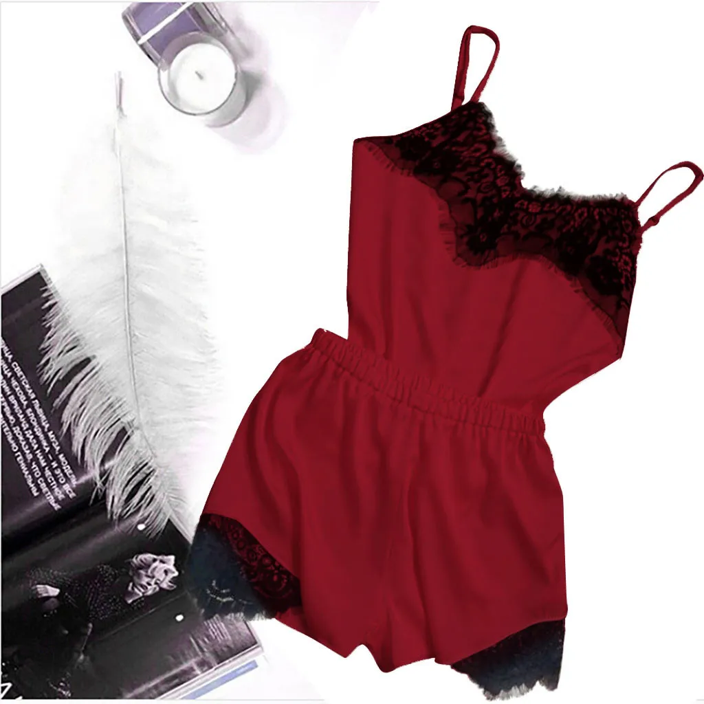 Женское сексуальное атласное нижнее белье на бретельках, кружевное ночное белье, комплект нижнего белья