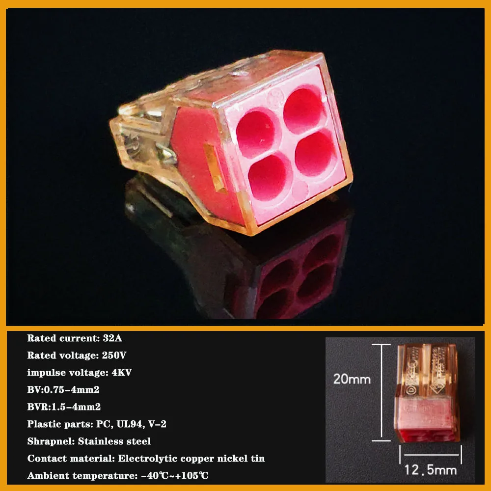 Название продукта: домашний соединительный провод/электрические соединители провода/Клеммы подключения провода/разъем питания/гнездо разъема Номер модели: 602 / 604 / 606 / 608 Материал изоляции: модифицированный нейлон (PA66) Материал контакта: Фосфорная медь