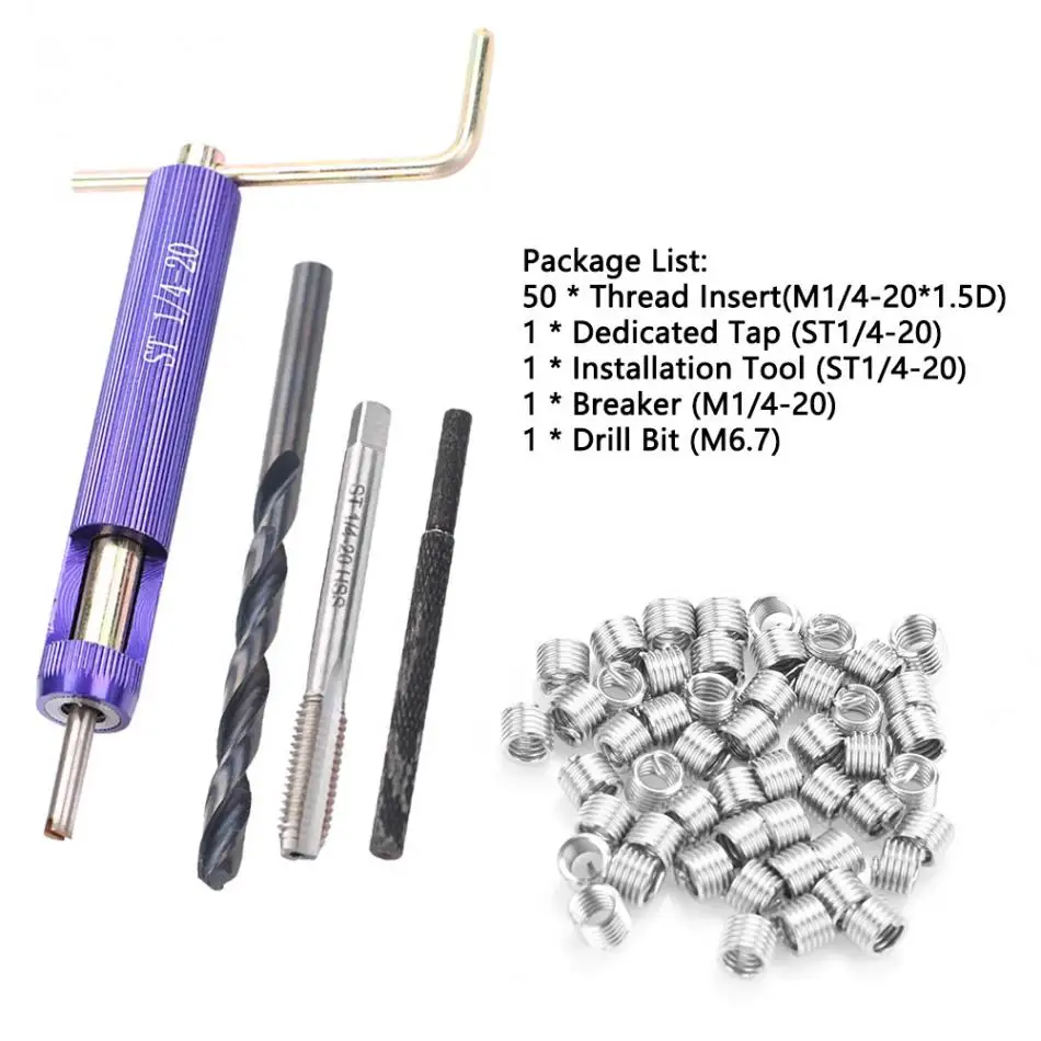 50 шт. набор инструментов для установки резьбы из нержавеющей стали M1/4-20 * 1.5D