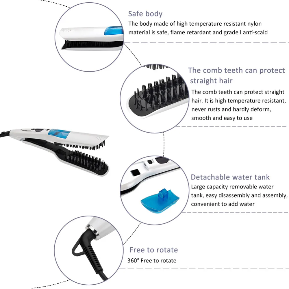 1. Паровой выпрямитель для волос не повреждает волосы для эффективного сглаживания волос и поддержания здоровья волос и кожи головы.